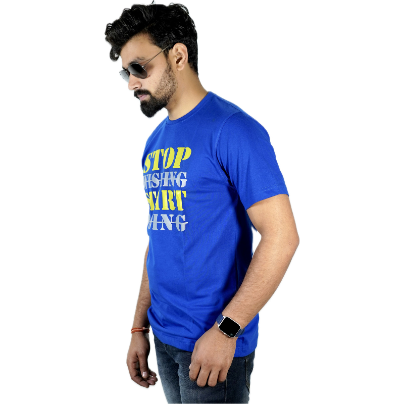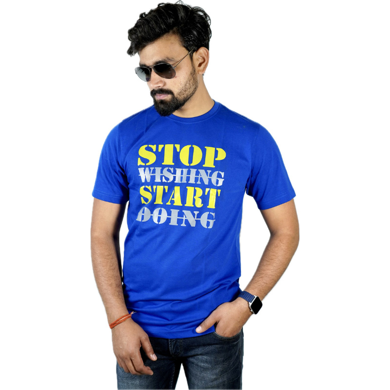 This round neck half-sleeve printed t-shirt combines comfort and style for everyday wear. Made from soft, breathable fabric, it ensures a relaxed fit and all-day comfort. The classic round neckline and short sleeves offer a timeless look, while the vibrant, eye-catching print adds a touch of personality to your outfit. Perfect for casual outings, weekend get-togethers, or layering under jackets, this t-shirt is a versatile addition to any wardrobe. Available in a variety of designs, it effortlessly complements jeans, shorts, or joggers for a laid-back yet stylish appearance.